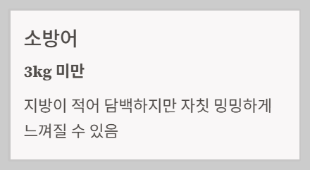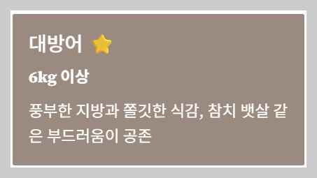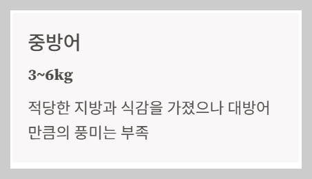 - ✅ **소방어(3kg 미만)**: 지방이 적어 담백하지만, 자칫 밍밍하게 느껴질 수 있음.
