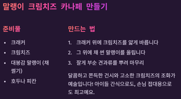 레시피 예시 📝: 말랭이 크림치즈 카나페
