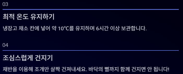 - 단기 보관 (1~2일): 해감 후 깨끗이 씻어 소금물에 담가두거나, 물기를 제거하고 신문지에 싸서 냉장 보관합니다.