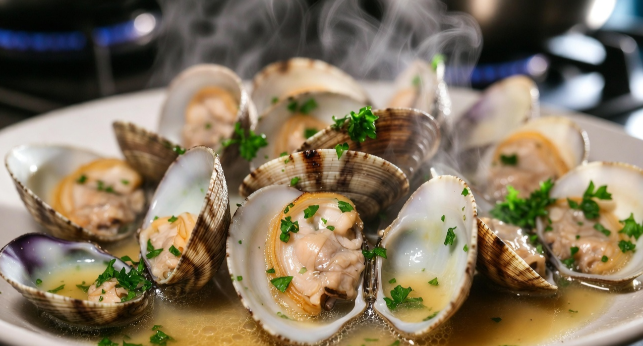 트렌디한 감칠맛: **동죽조개 술찜** (버터 마늘 레시피) 🥂