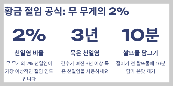 🧂 무 무게의 2% '천일염' 공식: 과학적인 절임 방법
