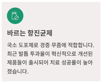 | **일반의약품** | **시클로피록스** | 오래된 성분. 매일 사용해야 함. 비교적 경미한 경우 효과적. | 로플록, 티나케어 등 |