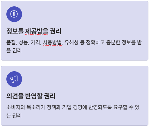 - **안전할 권리:** 제조업자의 리콜 및 회수 의무, 위해 상품 차단 시스템의 근거가 됩니다.