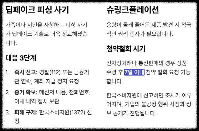 - **소비자 행동:** "너무 쉽거나 솔깃하다면 의심해야 한다"는 기본 원칙과 더불어, 개인 정보 제공 시 '소비자24' 등을 통한 보안 점검이 필수입니다.