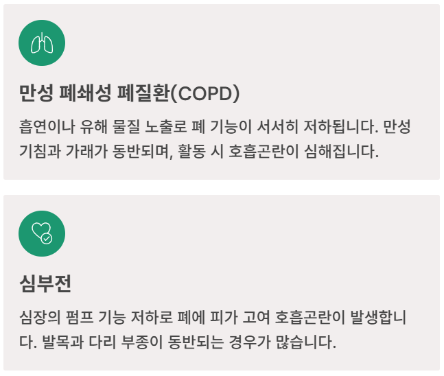 📌 폐 기능 저하로 인한 호흡곤란 (만성 폐쇄성 폐질환, 천식)