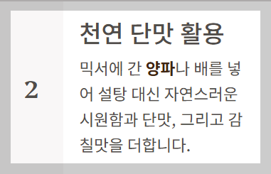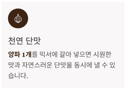 - 천연 단맛 활용: 믹서에 간 **양파**나 배를 넣어 설탕 대신 자연스러운 시원함과 단맛, 그리고 감칠맛을 더합니다.