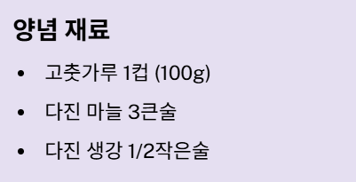| 재료 | 계량 및 팁 |