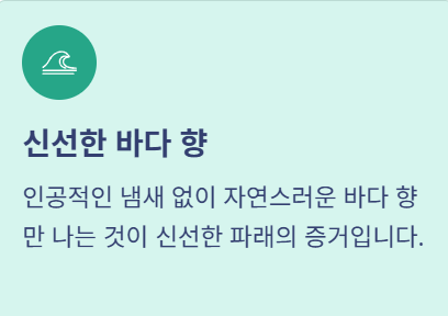 - 향: 인공적인 냄새 없이 **신선한 바다 향**만 나는 것이 좋습니다.